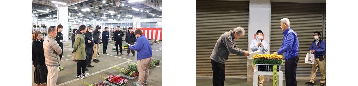 審査員は仲卸業者・ホームセンターや園芸店バイヤー・ガーデナーなど園芸流通に携わる幅広い分野の方々に依頼し、出品物の品質・商品性・生育の均一度などを基準に厳正な審査が行われます。優れた花壇苗には大賞や金賞が授与されます。