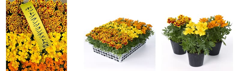 マリーゴールドは市場流通量の多い定番の花壇苗のひとつです。その中でもカナイヅカ園芸さんのマリーゴールドは、抜群の均一性を誇ります。