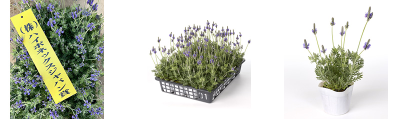 花茎が揃った状態は、エンドユーザーが好んで手に取る安定感を感じますし、葉の揃いも、葉の量も寄せ植えや花壇などでは、程よい透け感であり、葉が黄色く変色することもなく、揃った葉数や株揃いなことから、肥培管理と、風通し、日当たり、水捌けの環境など、すべてにとって、理想とするラベンダー栽培のお手本となる出来栄えと感じました。