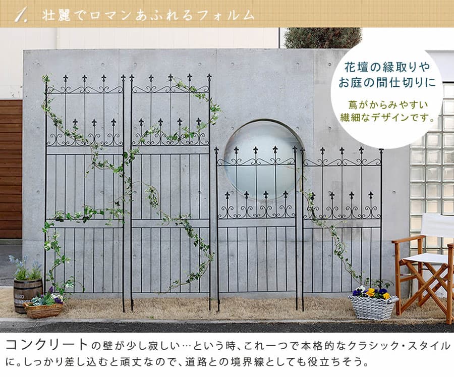 このガイドに関する商品 [送料無料]オールドシャトーフェンス150 ロータイプ (ブラック)2枚組 (幅143cm分、高さ156cm) [送料無料]オールドシャトーフェンス150 ロータイプ (ホワイト)2枚組 (幅143cm分、高さ156cm) [送料無料]オールドシャトーフェンス150 ロータイプ (ブラック)4枚組 (幅286cm分、高さ156cm) [送料無料]オールドシャトーフェンス150 ロータイプ (ホワイト)4枚組 (幅286cm分、高さ156cm) [送料無料]オールドシャトーフェンス220 ハイタイプ (ブラック)2枚組 (OC001H-2P-BLK)(幅143cm分、高さ220cm) [送料無料]オールドシャトーフェンス220 ハイタイプ (ホワイト)2枚組 (幅143cm分、高さ220cm) [送料無料]オールドシャトーフェンス220 ハイタイプ (ブラック)4枚組 (幅286cm分、高さ220cm) [送料無料]オールドシャトーフェンス220 ハイタイプ (ホワイト)4枚組 (幅286cm分、高さ220cm) [送料無料]オールドシャトーフェンス スリムタイプ (ブラック)2枚組 (幅72cm分、高さ156cm)(OC003SL-2P-BLK) [送料無料]オールドシャトーフェンス スリムタイプ (ホワイト)2枚組 (幅72cm分、高さ156cm)(OC003SL-2P-WHT) [送料無料]オールドシャトーフェンス スリムタイプ (ブラック)4枚組 (幅144cm分、高さ156cm)(OC003SL-4P-BLK) [送料無料]オールドシャトーフェンス スリムタイプ (ホワイト)4枚組 (幅144cm分、高さ156cm)(OC003SL-4P-WHT) [送料無料]オールドシャトーフェンス ミニタイプ 4枚組ブラック(OC004S-4P-BLK) [送料無料]オールドシャトーフェンス ミニタイプ 4枚組ホワイト(OC004S-4P-WHT) [送料無料]オールドシャトーフェンス ミニタイプ 8枚組ブラック(OC004S-8P-BLK) [送料無料]オールドシャトーフェンス スティックタイプ 4枚組ブラック(OC005ST-4P-BLK) [送料無料]オールドシャトーフェンス スティックタイプ 4枚組ホワイト(OC005ST-4P-WHT)
