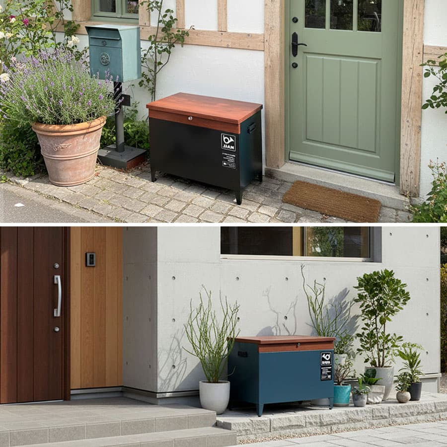 宅配機能付きの収納ベンチ。耐久性と使いやすさを兼ね備えた、暮らしに寄り添うコンパクト設計。置く場所を選ばず幅広いシーンで活躍します。