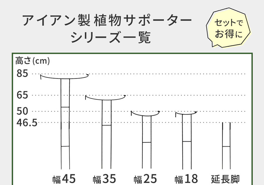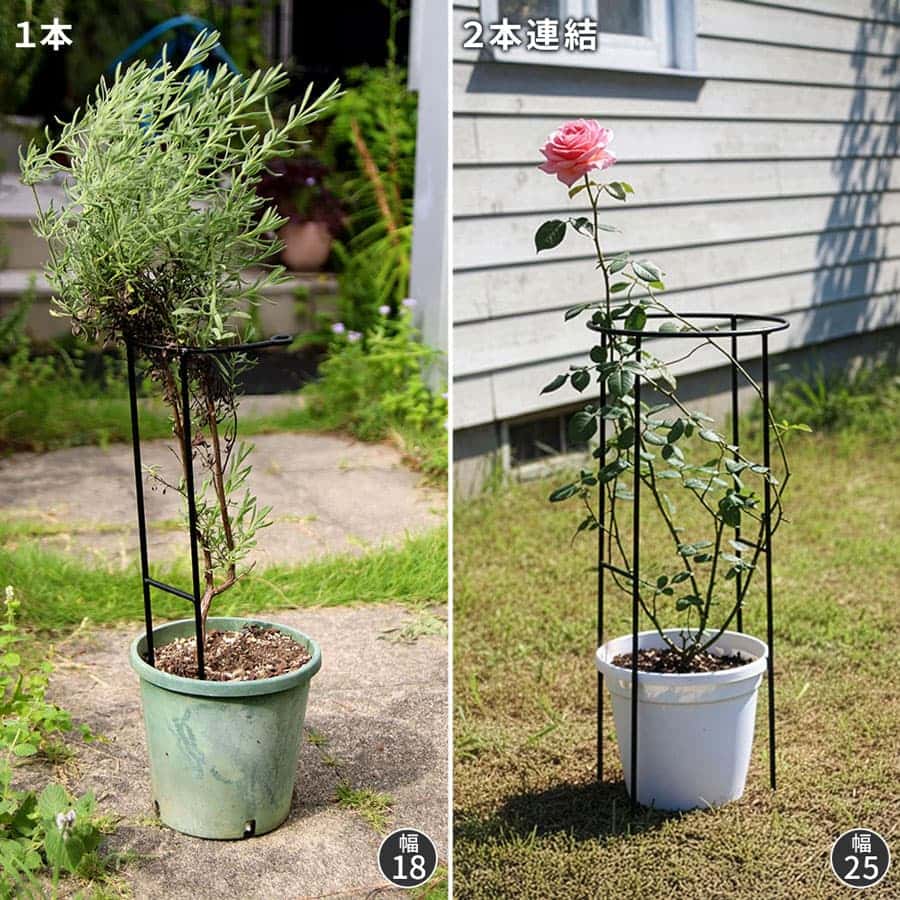 お庭の大切な植物が、花の重みで倒れたり、広がりすぎたりするときに、さりげなくおしゃれにサポートするアイアン製サポーター。地面にさすだけで抜群の安定感でエレガントに支えます。