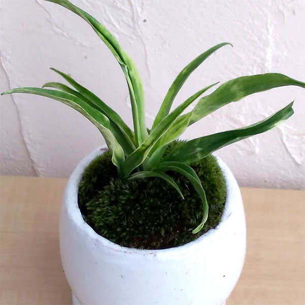 そのまま飾れる植え込みタイプ。姫牡丹(ひめぼたん)は凛とした美しい葉姿が人気の高級オモトです。非常に丈夫で地植えにも向いています。花は咲かず実は付きません。古来から、庭にオモトを植えると災難を防ぎ万年も家が栄えつづけるとされ、引越しの際新居の玄関にオモトを飾ると縁起がよいと言われています。オモトはキジカクシ科(スズラン科・ユリ科)オモト属の常緑多年草で、冬も枯れずに年間を通して青々と美しい姿が鑑賞でき、不老長寿の象徴ともされています。