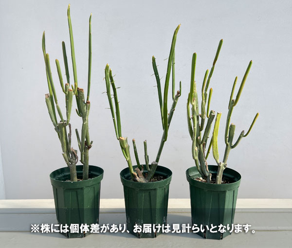 ★入荷から日数が経ったためセール価格となりました。商品の状態は画像と異なる場合があります。★葉がほとんどなく、ぺらぺらとした茎だけの姿が面白い多肉植物(ユーフォルビアの仲間)です。独特の形を生かして、個性的なデザインの鉢などに合わせるとすてきです。室内の日当たりの良い場所で育ててください。葉が伸びてくるとくねくねと横に広がっていきます。直立させたい場合は、なるべくよく日光に当てて支柱等で支えてください。