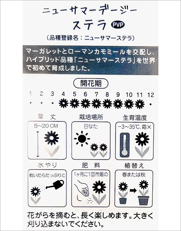 ニューサマーデイジー:ステラ(ニューサマーステラ)3-3.5号ポット495円