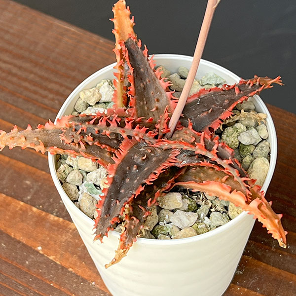 ★現品販売★アロエ カスティロニアエはマダガスカル原産で2006年に新種として発表されました。葉の縁には赤い刺があり、ロゼット状に葉を展開しますが、葉の先端が巻き込むように曲り独特の姿となります。成長はとても遅い品種です。