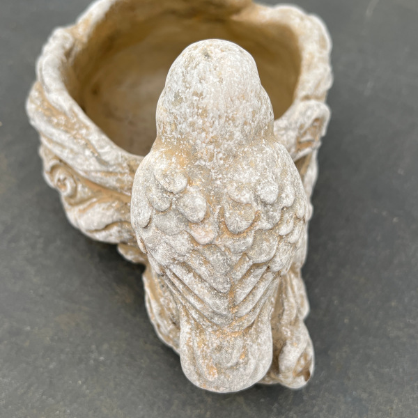 巣にとまった小鳥が可愛らしいアンティークな雰囲気の鉢です。多肉植物等の寄せ植えにおすすめです。