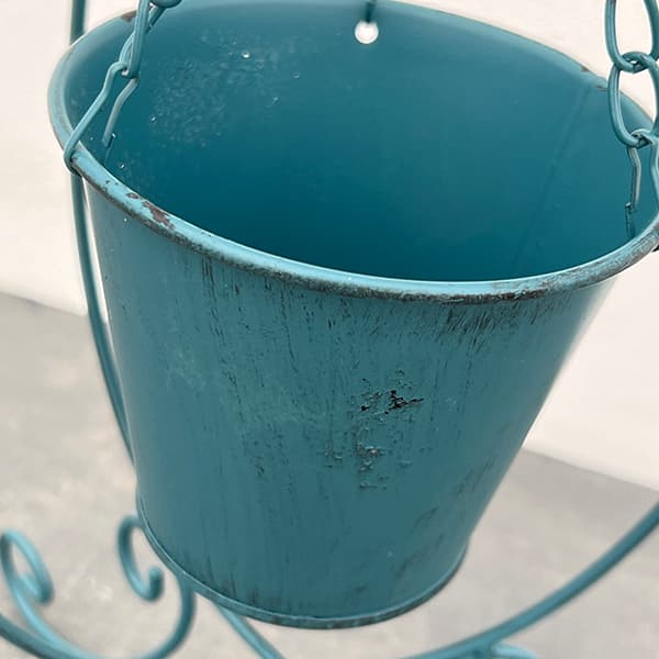 しずく型のフレームとコバルトブルーの色合いが美しい、スタンド式のハンギングプランター。