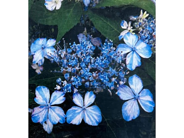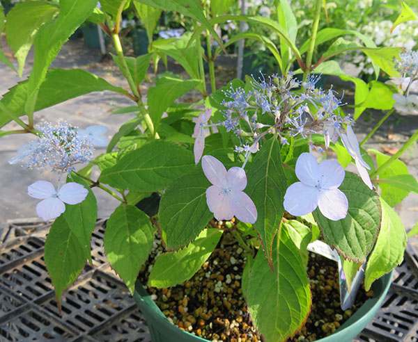 イウチガスリ(井内絣)は愛媛県伊予地方のヤマアジサイ。鋸歯のあるガク片に白絞りが入る品種です。