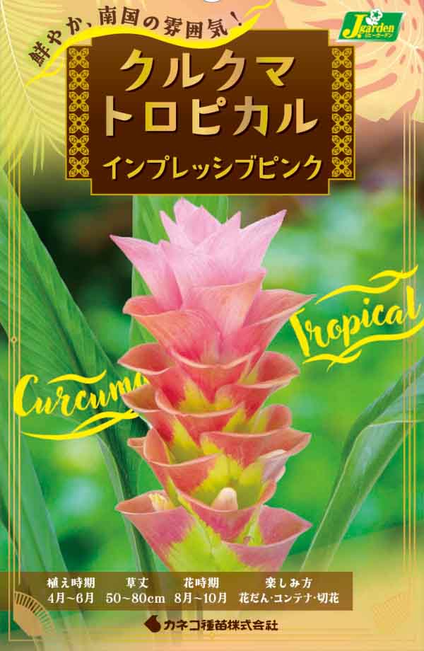 クルクマはインド~タイ原産の熱帯植物。国内では鉢花として親しまれていましたが、花壇に植えると夏から10月頃まで次々に開花し、1つの花の開花期間が約1ヶ月と長く楽しめます。暑さが厳しいほど元気に育ちカラフルな花が楽しめるので、夏花壇に最適です。また、切花やアレンジメントにもおすすめです。簡単で育てやすいのでどなたでも手軽に楽しめます。栽培のコツは、肥料をたっぷり与えることです。