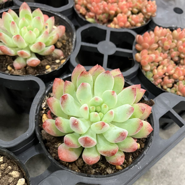 多肉植物用の培養土など、水はけのよい土を使って植え付けてください。エケベリアは春と秋に生育期を迎え、暑い夏期と寒い冬期は休眠します。