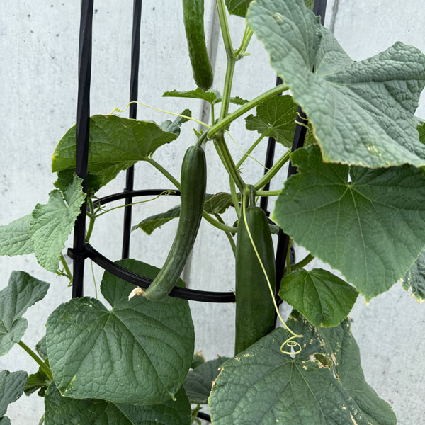 肉厚で歯切れの良い、おいしいキュウリ!節なりタイプなので、摘心不要で育てやすい。節間が短く、ゆっくり伸張するタイプなので、ネット要らずでオベリスクプランター仕立てでも栽培可能なサントリーフラワーズの節なりプランターキュウリです。地植えでも栽培可能です。うどんこ病、褐斑病、べと病に強く、丈夫で収穫期間が長い品種です。