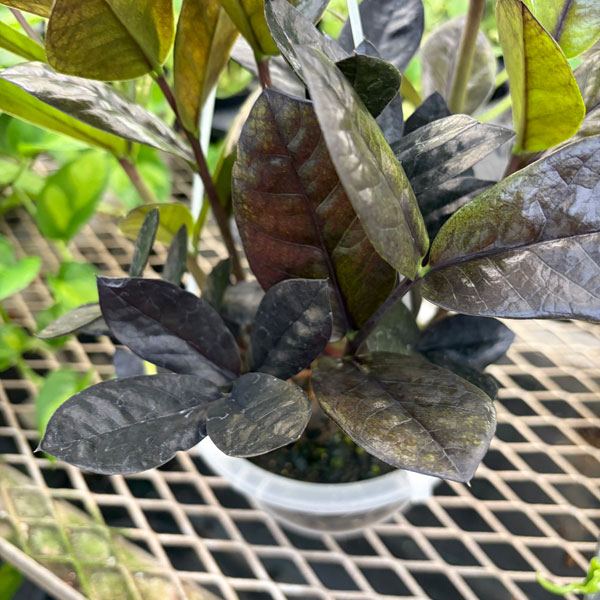 ★浅岡園芸さんのレイブンです★ザミオクルカスの黒葉品種。つやのある黒葉が美しいレイヴンです。従来のザミオクルカスには無かったクールでモダンな姿!インテリアに最適です。若葉は緑色ですが、若葉が出て半年ほど経過し葉が成熟するとつやのある黒葉になります。ザミオクルカスはアフリカ東部原産の多年草。