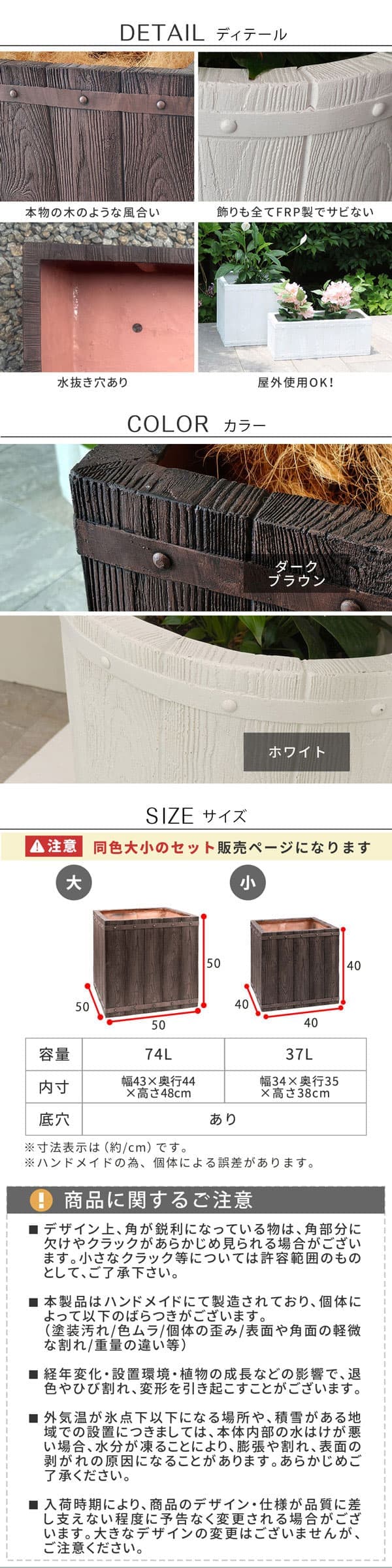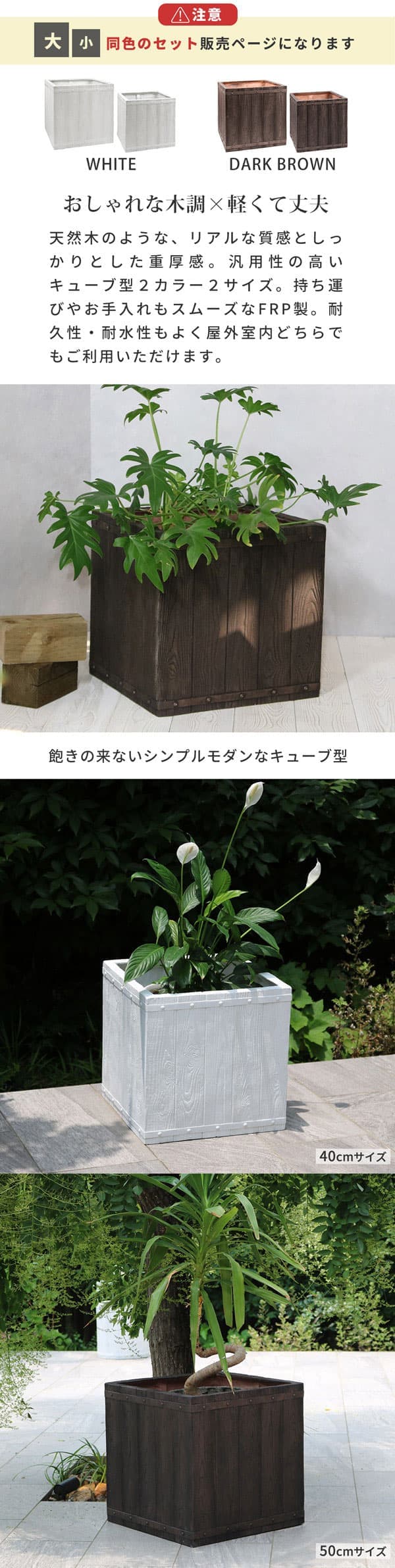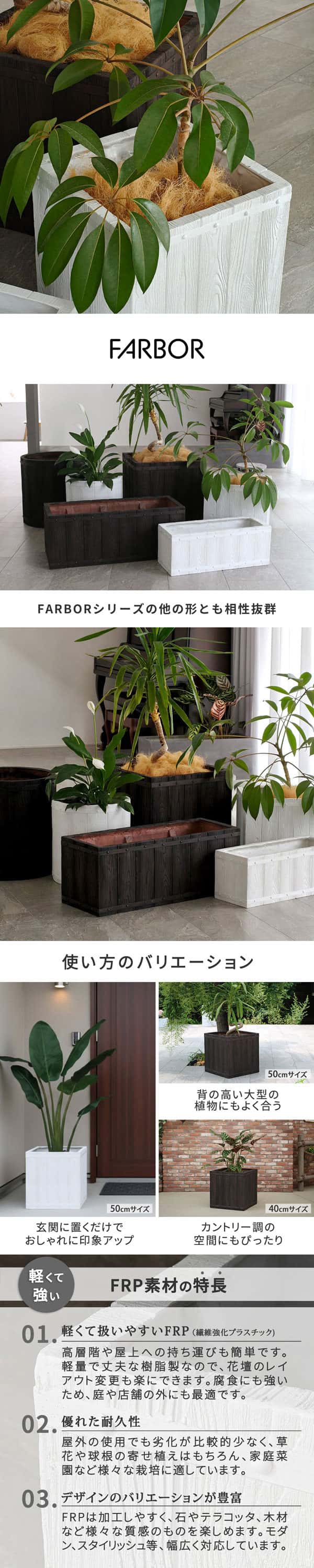 | 商品名 | 「FARBOR」 ファーバー 木調FRPプランター 幅40・50 (角型) 大小2個セット |