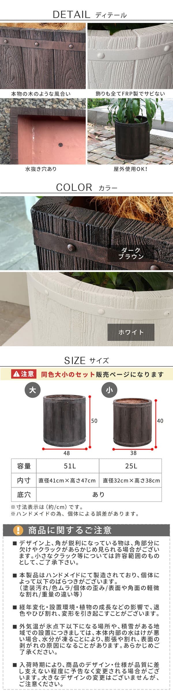 | 商品名 | 「FARBOR」 ファーバー 木調FRPプランター 幅40・50 (丸型) 大小2個セット |