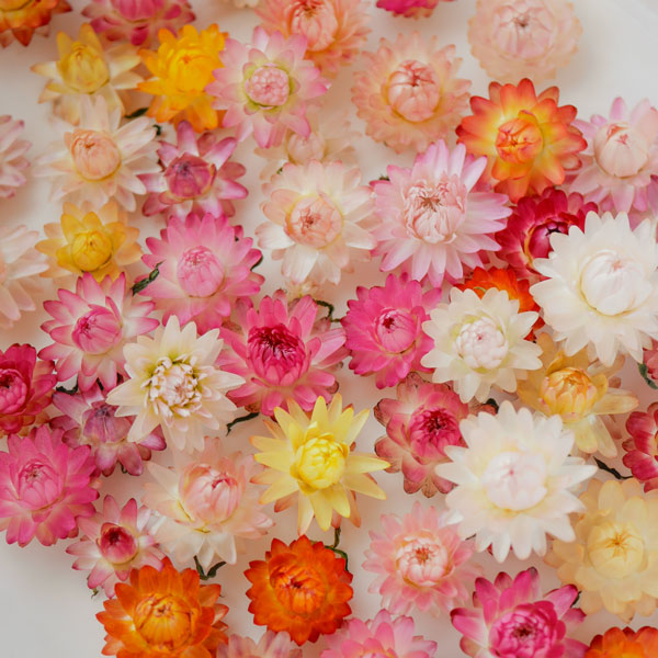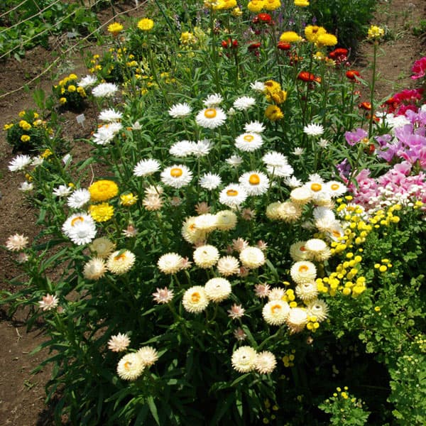 暑さに強い花壇向けの1年草。貝細工のような乾いた質感の花で、花色が豊富です。ドライフラワーに最適。ついに見とれてしまうほど美しい花が咲きます。