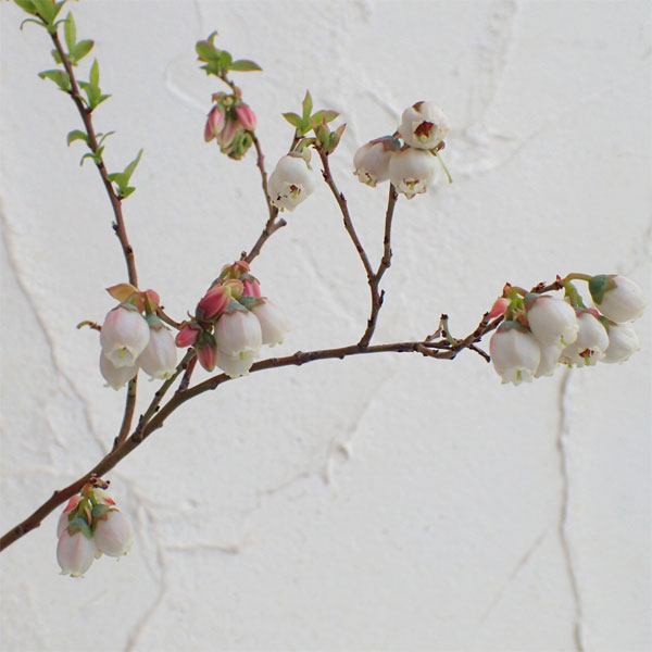 サンシャインブルーは耐暑性の高いラビットアイ系と、高品質のハイブッシュ系の長所をあわせ持つ、サザンハイブッシュの優良系です。実には強い甘味と芳香があり、1本でもたわわに実る自家結実性があります。弱アルカリ土壌でも育つ強健種です。暑さに弱いほかの品種と異なり、沖縄でも栽培可能な耐暑性を備えています。花はピンク~白(開花時の気温により花色が変わります)で、葉は半常緑性。樹形は開張性でほかの品種よりもコンパクトで成長が遅く、最大でも1mほどなので、狭いスペースや鉢植えに向きます。一般地以南では冬も青々とした細かな葉が茂り、成木になるほど葉が密になります。たくさんの実がつくようすはみごとです。樹形が良く、庭木としてもおすすめの品種です。この品種はかなり自家結実性があり1本でも結実しますが、他の品種を近くに植えて互いに受粉させた方がさらに実付きがよくなり、またより実が大きくなります。同じサザンハイブッシュ系のブルーベリーの他の品種と組み合わせてください。