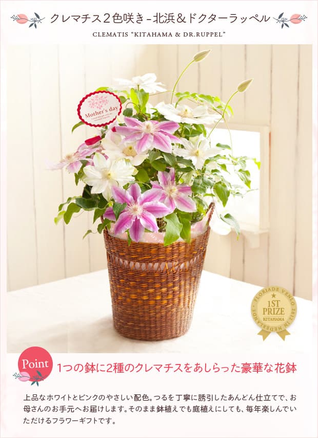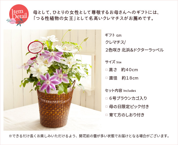 ![[送料無料][2016年母の日ギフト][予約]クレマチス:2色咲き(ドクターラッペル&北浜)6号鉢ブラウンカゴ入り](https://img.engei.net/images/libimg/0/m5_honten.jpg)