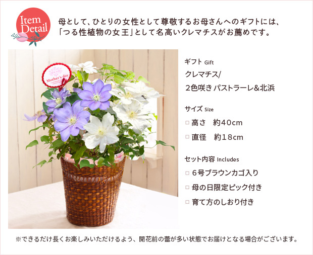 ![[送料無料][2016年母の日ギフト][予約]クレマチス:2色咲き(パストラーレ&北浜)6号鉢ブラウンカゴ入り](https://img.engei.net/images/libimg/0/m6.jpg)