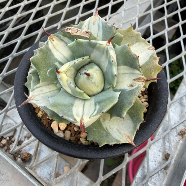 ★葉傷みあるため特価★★入荷から日数が経ったためセール価格となりました。商品の状態は画像と異なる場合があります。★王妃雷神は雷神(A. potatorum)のごくわい性ダルマタイプです。葉は硬質で鋭いトゲがあります。アガペ属の殆どは生涯に一度だけ花を咲かせその後に生涯を終えますが、開花までに子株を付けるので株分けで代替わりとなります。真夏の直射日光で葉焼けを起こす場合があるので、気をつけます。