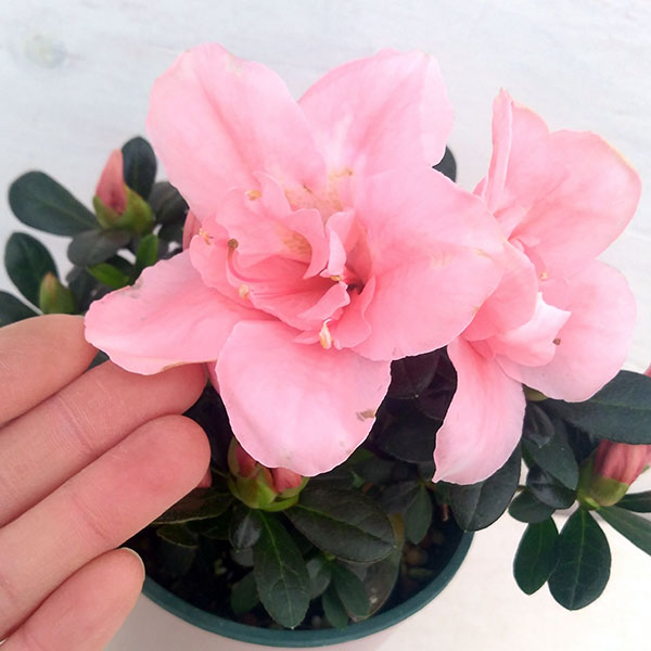 室内でより長く、豪華に楽しむインドアベルギーアザレア!アザレアは別名西洋ツツジ。国内では戸外で楽しむ鉢花として流通していますが、海外ではインドアで楽しむ鉢花となっています。「ベルギーアザレア」はHortinno社の開発した品種で、従来のアザレアに比べ、とても鮮やかな花色で、豪華な花です。開花中は室内の日が当たる窓辺でお楽しみください。涼しい場所で管理するとより長く花がきれいな状態を保ちます。また、霜が終わるころからは戸外でも管理できます。★写真はお届けする花の一例です。品種特性上、花色・花形は個体差があり、写真と若干異なる花でお届けする場合がありますので、ご了承ください★