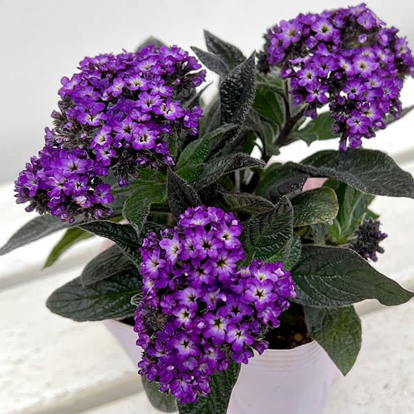 夏に連続開花する画期的なヘリオトロープ!幸せを呼ぶブライダルブルーの花が長く咲き続けます。バニラの香りも楽しんでくださいね。開花期間は春から秋。一般的なヘリオトロープが開花を休む暑い環境下でも連続開花します。分枝性が良いので、枝ごとに花がつき、たくさんの花を楽しむことができます。また、株の姿はコンパクトでまとまりが良いので、鉢植えに最適。香水の原料にもなるやわらかなバニラの香りを持ち、ポプリやドライフラワーにも利用できます。