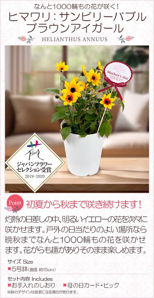 [送料無料][2026年 母の日ギフト][予約]ヒマワリ:サンビリーバブル ブラウンアイガール 5号鉢植え