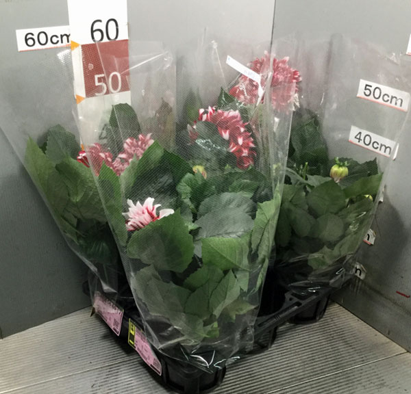 ダリアは鉢植えの場合、弁数や輪のサイズは本来の花よりも小さめとなります。