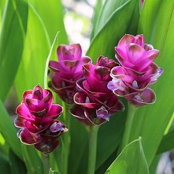 夏咲きのトロピカルプランツの中でも特に人気のクルクマ。インド~タイ原産の熱帯植物です。開花し始めてから1ヶ月以上も開花が楽しめ、鉢植えにも最適です。簡単で育てやすいのでどなたでも手軽に楽しめます。アイルージュは愛知県農業総合試験場が開発したクルクマで、きれいなピンク色の花です。ピンクの代表的な品種シャローム同様にとても花もちがよく、よりコンパクトな草姿で楽しめます。花冠は、長さ10cm、幅6cmほど。耐暑性、耐乾性があり、1株から発生する花茎数も多く、日持ち性(切り花で10~14日、鉢花で約1か月)に優れます。花壇に植え替えれば10月下旬まで花を咲かせ続けます。★植え付け後に蕾が順次出てきます。お届け時は1番花が終わっている場合もありますが、そのまま植えてください★