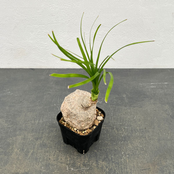 沖縄から届いたぷっくりと幹元を膨らませたトックリラン ノリナです。ミニサイズですが、長い時間かけてぷっくり太らせた時間と手間がかかった逸品です。トックリランはメキシコ東南部原産。茎が高く伸び、根元が徳利のように大きく膨張する形が面白い観葉植物です。葉は固く長い線状になり、鉢栽培では樹高2mほどになります。水切れに強く、耐陰性もあるので、インテリア観葉に最適。手入れの手間がかからない丈夫な品種です。