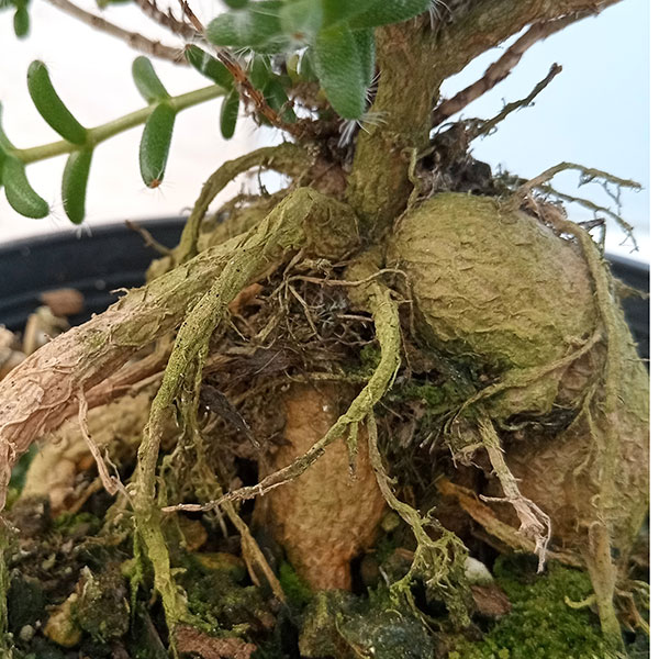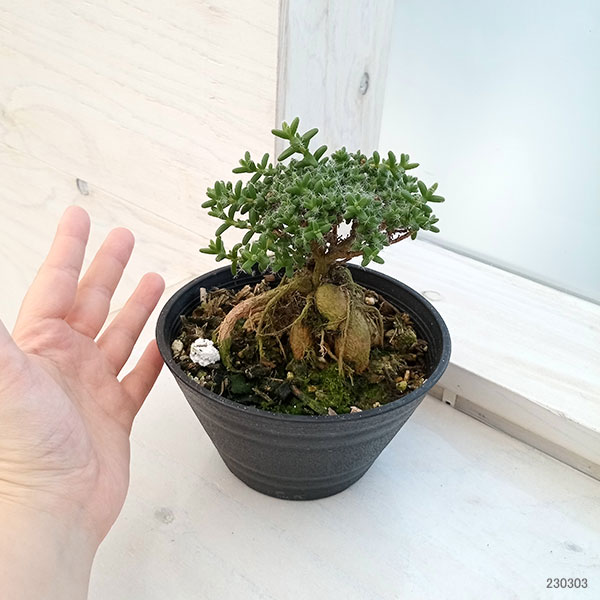 塊根性の小型種で、粒状の多肉質の葉をたくさんつけます。その草姿から天然の盆栽とも呼ばれており、手間をかけずに盆栽のような樹形になります。根上がりがとてもきれいな逸品です。★時期により葉姿が異なります★
