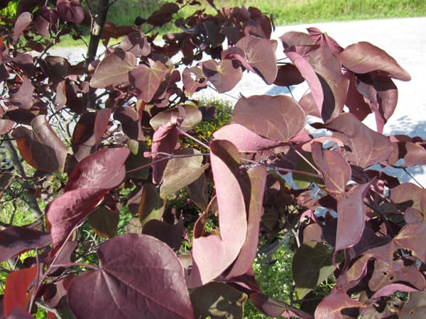 紅紫の葉を持つ庭園樹のなかでもっとも人気の高い品種のひとつ、注目の花木です。この葉色の花木はなかなか美しい葉色が継続して楽しめるものがないのですが、フォレストパンシーは鮮やかな明るい濃紅紫色が初夏まで楽しめます。夏以降は徐々に緑色となります。また、4月には薄桃色の花も咲きます。