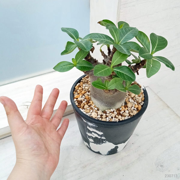 ★現品販売★タイから直送で入ってきた厳選輸入株、人気のアデニウム :アラビカム スーパードワーフです!でっぷりぷくぷくの良株です!アデニウムは南アフリカ、カラハリ砂漠近辺の一部の地域に自生する多肉植物の仲間。大きく肥大化する根はコーデックス(塊根)と呼ばれ、1株ずつ個性的な姿に成長します。ぷっくりと膨らむ茎の上部に枝を出し、先端に葉をつける独特な株姿が特徴です。★到着してすぐに植え替えた株になります。基本返品交換ができない商品です。ご了承の上、お買い求めください★