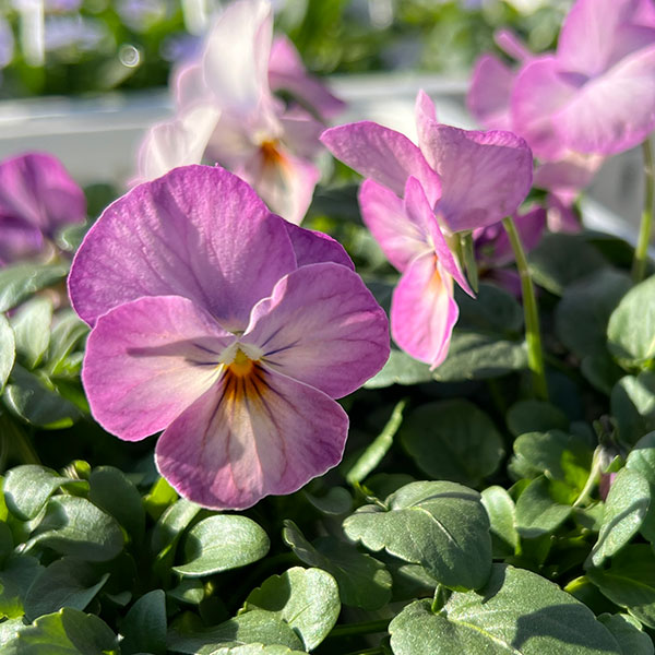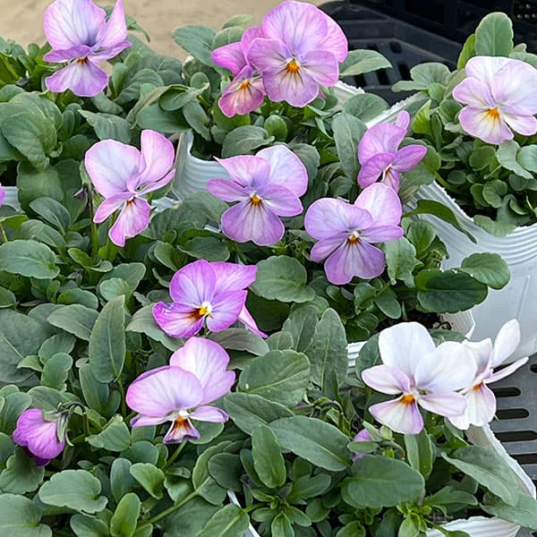 ピンクアンティークは、大人っぽい雰囲気のアンティーク系の花色です。柔らかでどこか懐かしい雰囲気は遠い異国の町並みを思い起こさせてくれます。ややサーモン味のある明るい色。低温期には青味が強くなります。ビオラ・ビビシリーズは花つき、株張りともに非常によく、ハンギング、花壇、コンテナ、寄せ植えと用途は豊富です。花期が長く、秋口から春まで楽しめます。