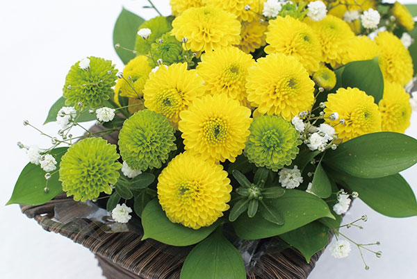 キク:秋咲きデュエットマム(菊の苗)ポンポン咲き緑黄色系3.5号(メロディ、ジェミニ)