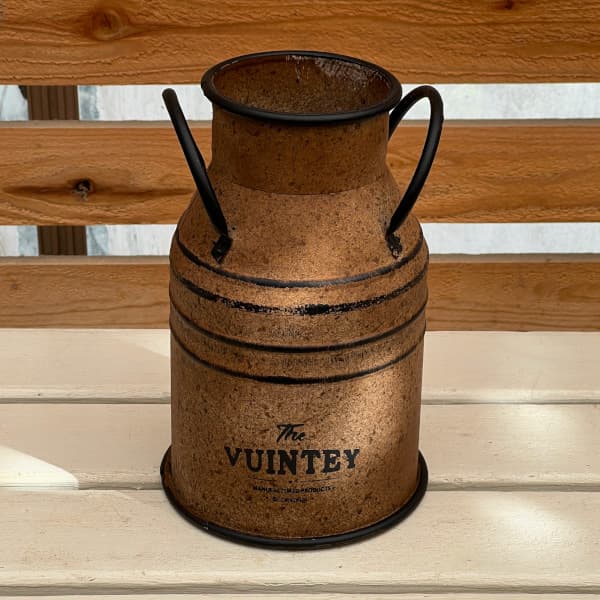 『Vuintey(ヴィンティー)』は、Vintage+Rustyを組み合わせた造語。サビ加工が独自の味わいで、おしゃれなジャンクガーデンを演出してくれます。ミルクカンは、室内でドライフラワーを飾ったり、お庭のディズプレイなどにご使用ください。底穴は開いておりません。