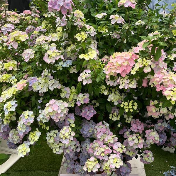 土壌のpHが酸性の場合はブルー系に、アルカリ性の場合はピンク系になりますが、その中間の場合にブルー、パープル、ピンクが混ざり合い、美しいミラクルなグラーデーションが現れることがあります。