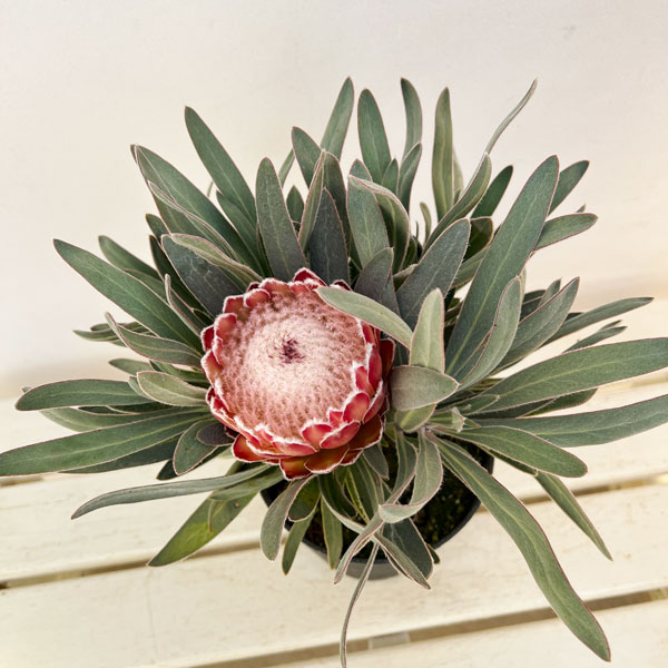 ジュリエットは濃いピンク色の大きな花が美しいです。比較的コンパクトなサイズです。プロテア属はオーストラリアや南アフリカなどに分布する常緑低木です。多数の花が集まって頭状花序をなし、着色した総苞が美しくそれを取り囲みます。花持ちがよく切花として注目され、またドライフラワーになります。原産地は南アフリカのケープ地方で、南アフリカの国花です。