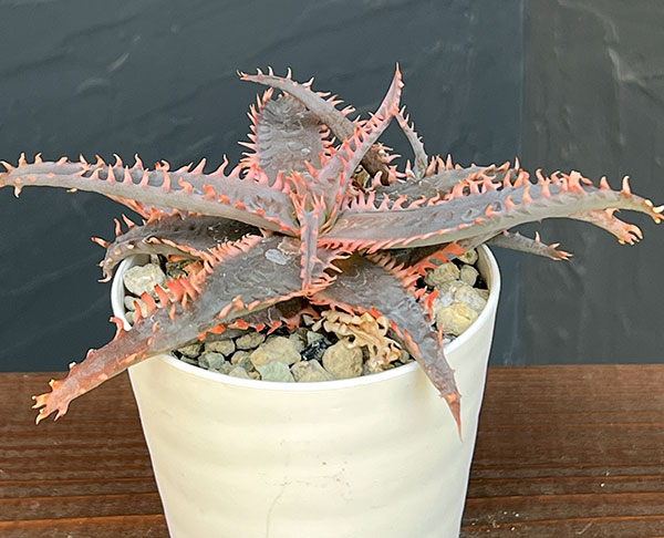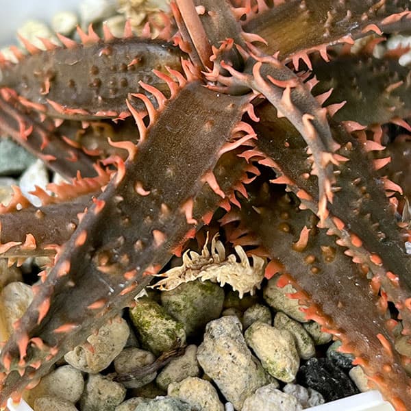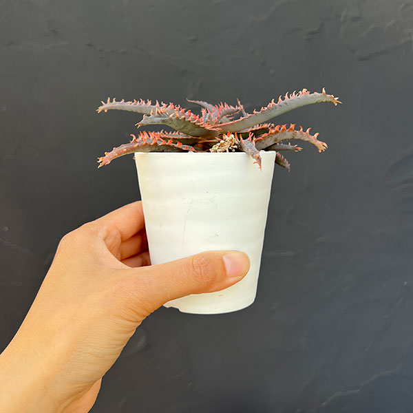★現品販売★アロエ カスティロニアエはマダガスカル原産で2006年に新種として発表されました。葉の縁には赤い刺があり、ロゼット状に葉を展開しますが、葉の先端が巻き込むように曲り独特の姿となります。成長はとても遅い品種です。