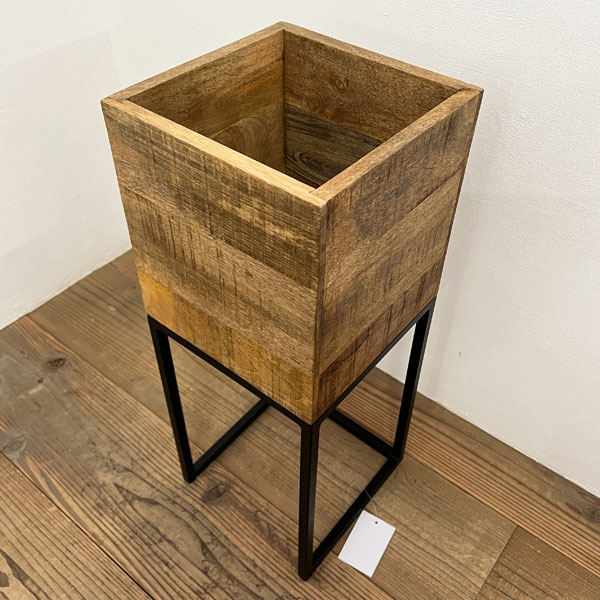 マンゴーウッドの無垢材とアイアンを使用した、自然でシンプルながらも高級感のあるボックススタンドです。木目の表情を活かしており、使い込むほど味わい深い風合いが出てきます。鉢カバーや什器としてお店などのディスプレイにもぴったり。ある程度耐水性があり、密で強度もあるため、植物をしっかりと支えることができます。