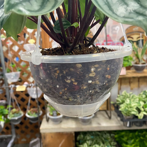 ネガミエルエアーは透明でおしゃれな吊り鉢です。透明なので根の成長が目視で確認でき面白いです。用土は冨永植物オリジナル用土です。お届けの鉢のまま長期間管理ができます。サンデルシーは葉がスイカのように見えることから、「スイカぺぺ」とも呼ばれる愛らしいペペロミアです。