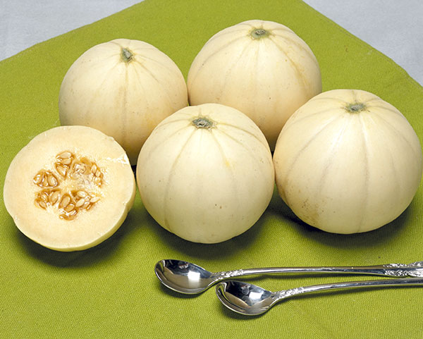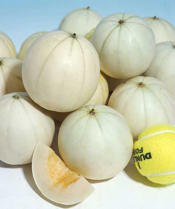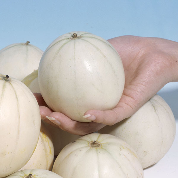 1株から10-20果とたくさん収穫できる、果重250-300gのミニメロン!摘果の必要がなく省力的で作りやすい。糖度は高く安定し、日もち性に優れる。果実をスプーンで食べたり、種子部をくりぬいてアイスクリームを詰めるなど、楽しみ方もいろいろ。