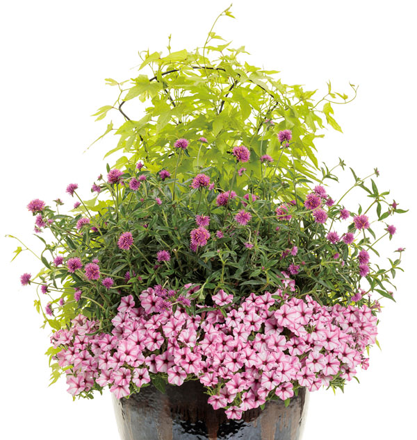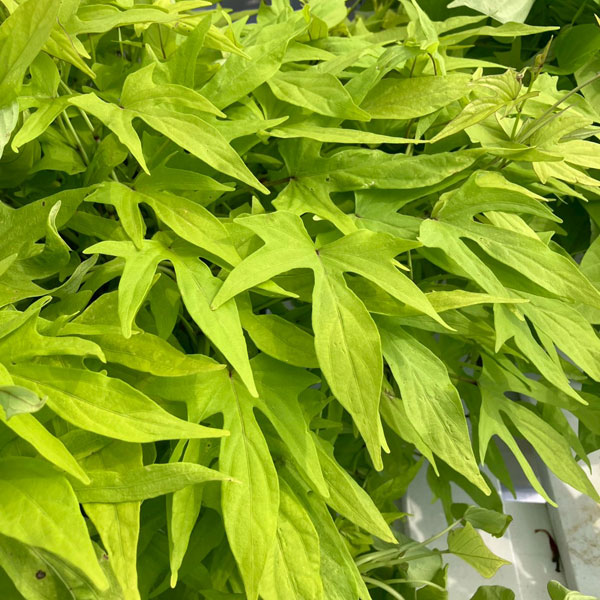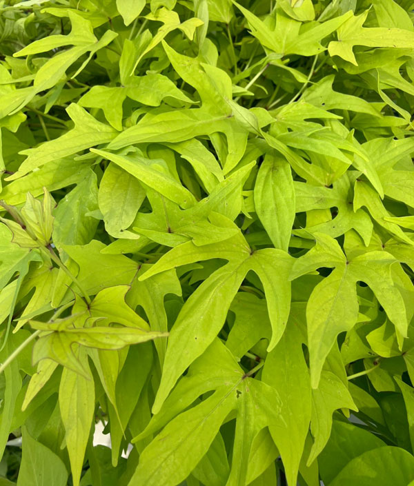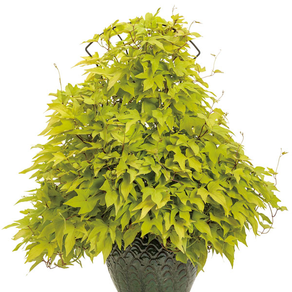 夏空に映えるPWのイポメア!高温多湿な日本の夏にも強く、元気にボリュームいっぱいに成長するカラーリーフです。スパイラルシリーズは葉が密に茂り、間延びせずに育つクライミングタイプ。強い日差しの下でも葉焼けせず、涼しげな印象。目隠しや日よけなど、グリーンカーテンにもおすすめです。生育旺盛なので、成長に応じて適度に刈り込むとこんもりとボリュームが出ます。カットした枝は切花としても楽しめます。