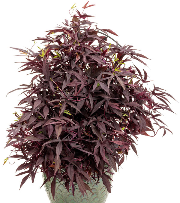 夏空に映えるPWのイポメア!高温多湿な日本の夏にも強く、元気にボリュームいっぱいに成長するカラーリーフです。スパイラルシリーズは葉が密に茂り、間延びせずに育つクライミングタイプ。強い日差しの下でも葉焼けせず、涼しげな印象。目隠しや日よけなど、グリーンカーテンにもおすすめです。生育旺盛なので、成長に応じて適度に刈り込むとこんもりとボリュームが出ます。カットした枝は切花としても楽しめます。