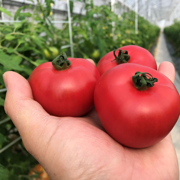 こいあじ中玉はフルーツトマトのような濃厚な甘さ。コク深く、トマトらしい香りと酸味。40~60g前後のサイズ。こいあじ大玉のおいしさを凝縮した中玉トマト。