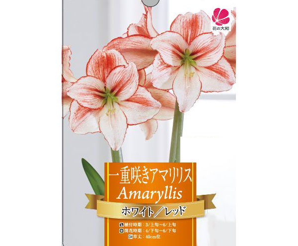 [26年3月中下旬予約]一重咲きアマリリス:ホワイト&レッド1球