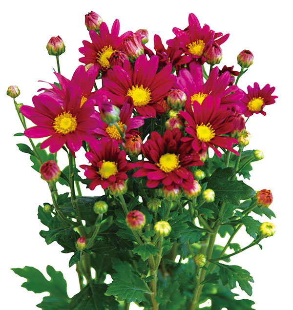 そのまま植えるだけで開花を楽しめる手間なし菊。剪定、摘芯などの手間がかかりません。摘芯済みの大株を3本植えにした菊苗です。そのまま鉢や花壇に植えるだけで花が咲くので、手入れの手間がかからず、大人気の菊苗です。6月と10月の2回開花します。6月の開花が終わったら切り戻してください。切り花にも重宝します。