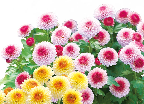 [26年5月中下旬予約]キク:秋咲きデュエットマム(菊の苗)バラエティータイプ桃黄系3.5号(ラブベリーとフォルテ)*
