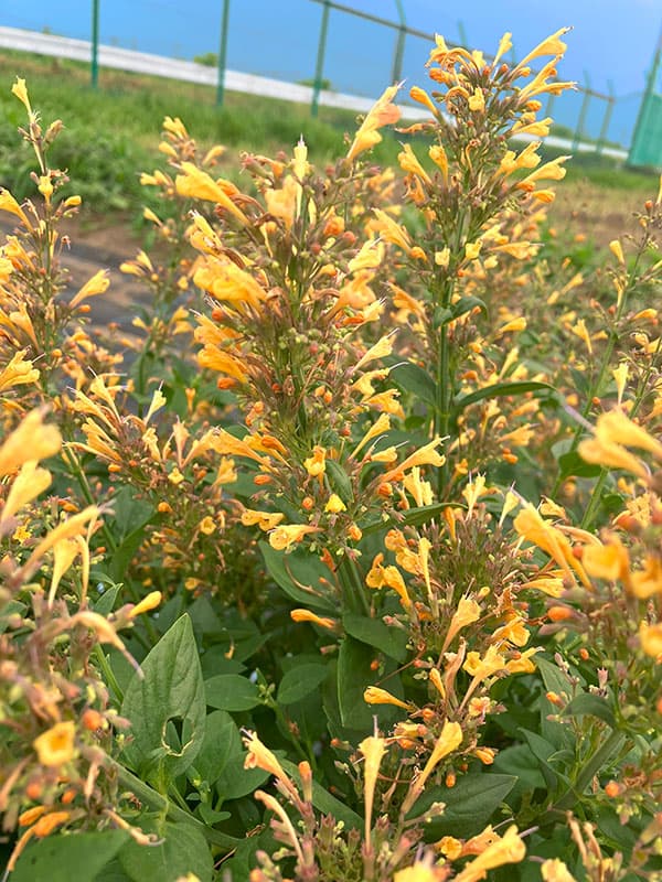 「アガスターシェ アロマブーケ」は、シソ科の魅力あふれる花苗で、爽やかな香りの葉とカラフルな花穂が初年度から楽しめる園芸品種です。穂状に咲き広がる花は夏〜秋にかけて長く咲き、蝶やミツバチなどの蜜源植物としても人気。葉はやさしいアロマがあり、摘んでポプリやドライフラワーにもできます。コンパクトな株姿で洋風・ナチュラルガーデンの花壇や寄せ植えにぴったり。栽培は比較的簡単で、日当たりの良い場所に植えるだけで丈夫に育ち、ガーデニング初心者にもおすすめです。