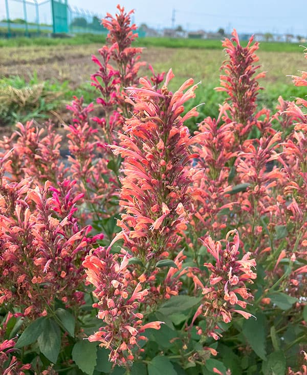 「アガスターシェ アロマブーケ」は、シソ科の魅力あふれる花苗で、爽やかな香りの葉とカラフルな花穂が初年度から楽しめる園芸品種です。穂状に咲き広がる花は夏〜秋にかけて長く咲き、蝶やミツバチなどの蜜源植物としても人気。葉はやさしいアロマがあり、摘んでポプリやドライフラワーにもできます。コンパクトな株姿で洋風・ナチュラルガーデンの花壇や寄せ植えにぴったり。栽培は比較的簡単で、日当たりの良い場所に植えるだけで丈夫に育ち、ガーデニング初心者にもおすすめです。